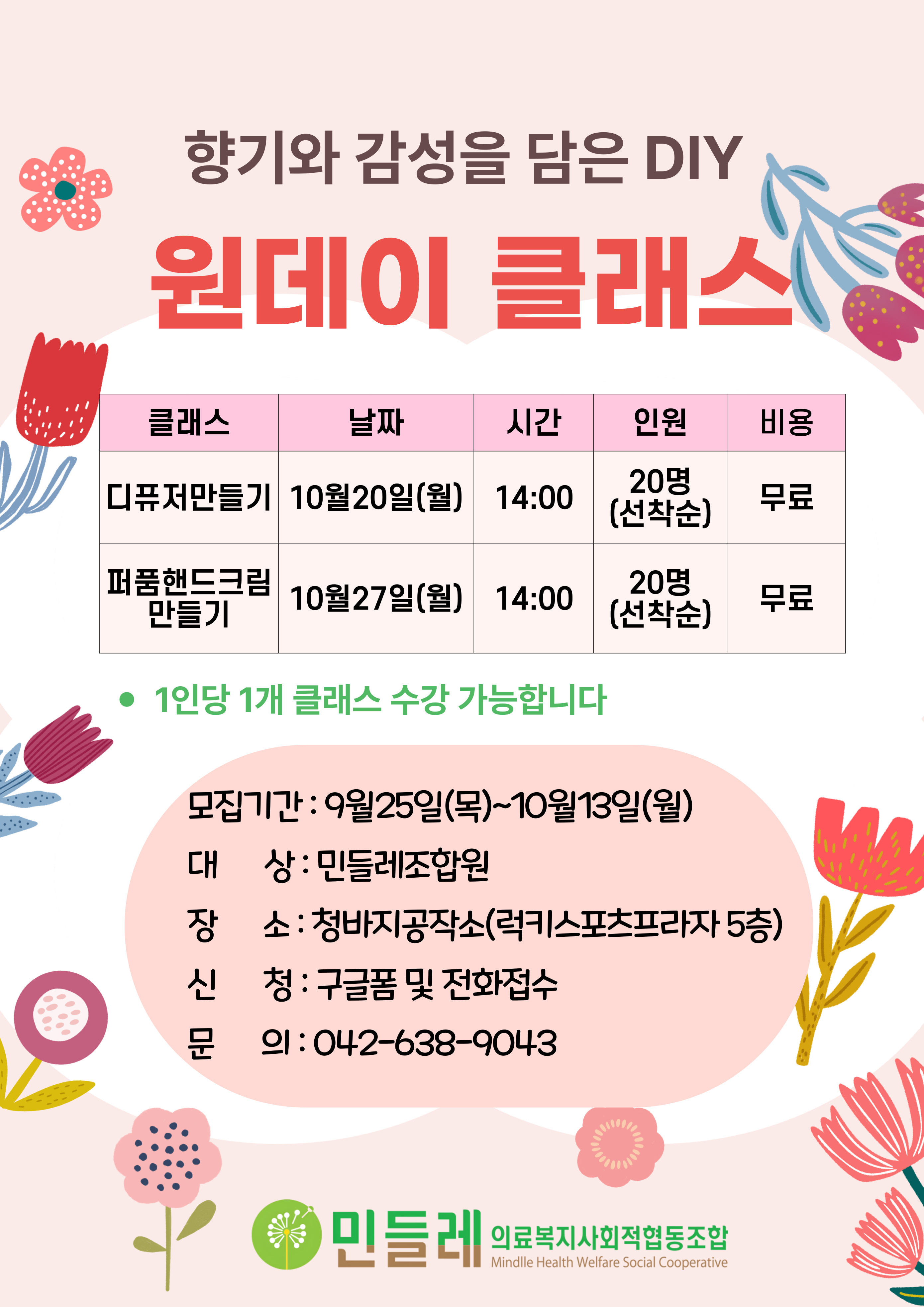 [디퓨저 & 퍼퓸 핸드크림 만들기] 원데이 클래스 선착순 모집