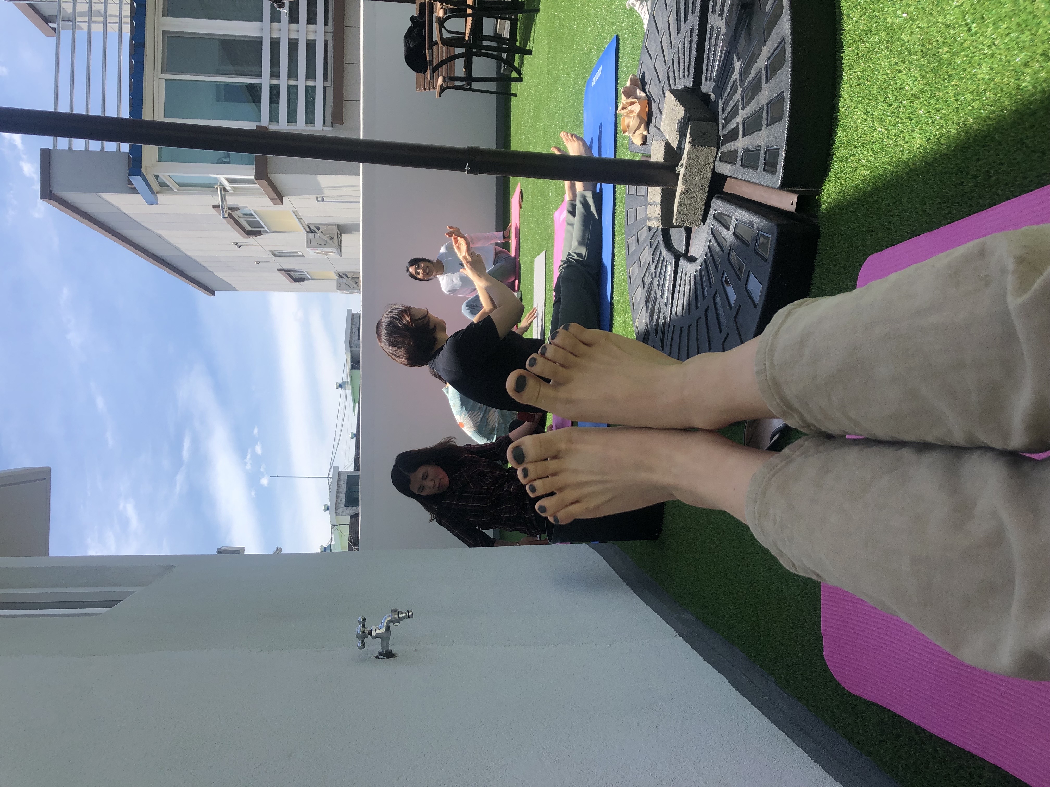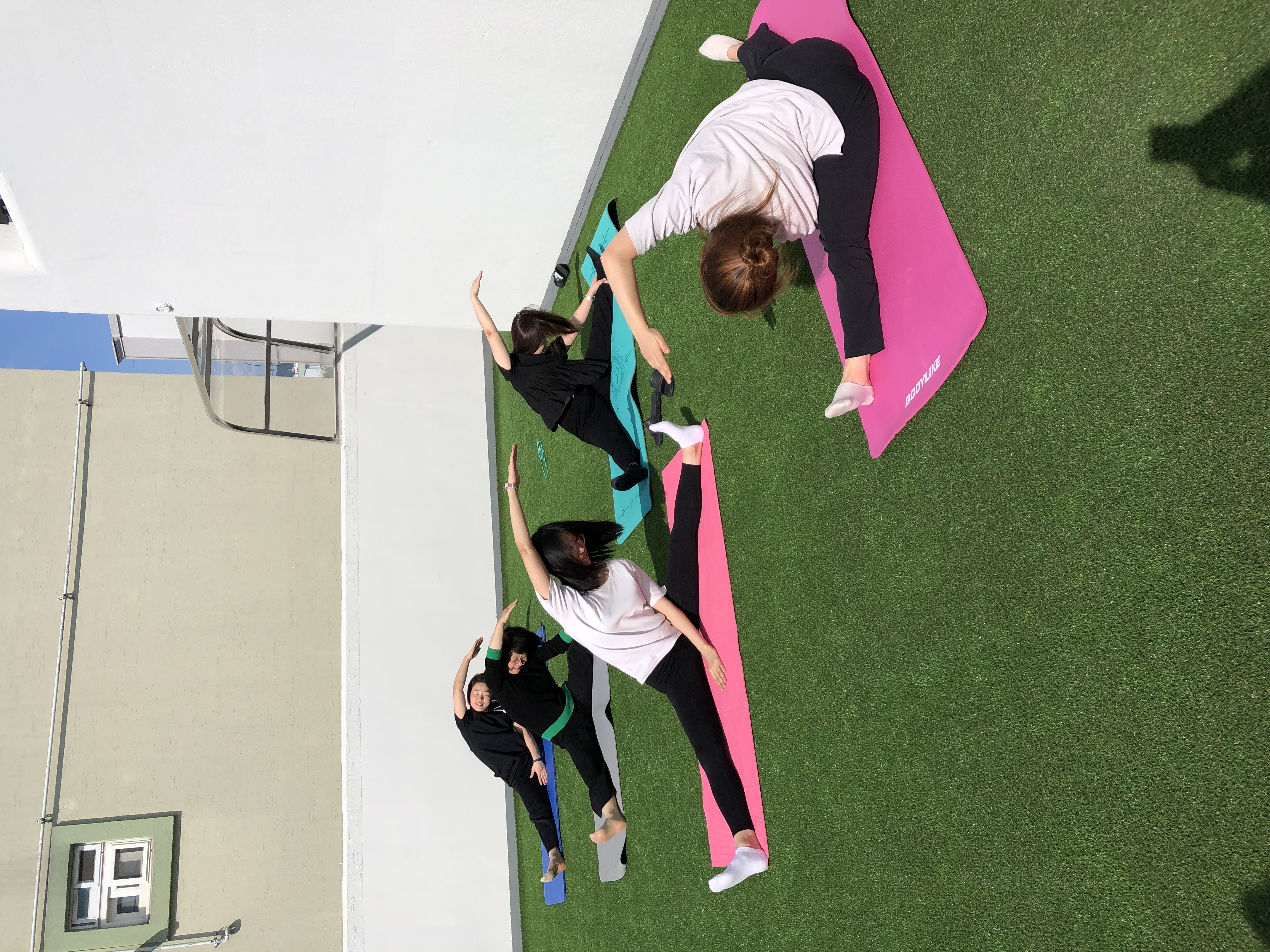 점심식사 후 옥상에 모여서 유하영 선생님의 지도로 고관절과 어깨를 스트레칭하고 코어근력을 기르는 운동자세를 배울 수 있었습니다. 각자 배운 자세를 연습하고 다시 만나기로 했습니다.